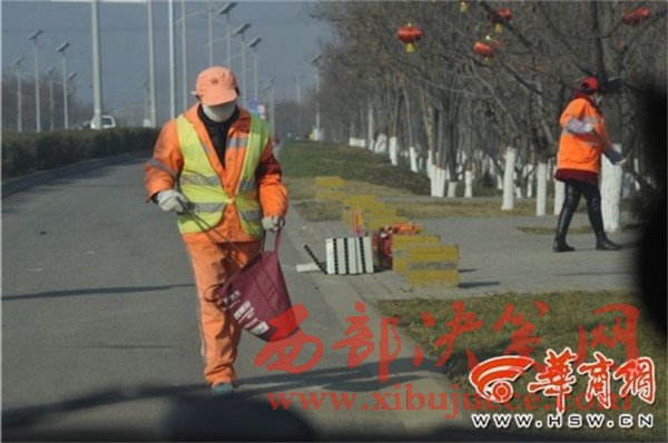 從十字路口向南約450米長的東側道路都屬于潘雙成的保潔區(qū),自從西安開展環(huán)境大整治治理以來,“綠化帶里的垃圾都撿干凈了,現(xiàn)在就是巡查著看看隨意丟棄的垃圾。”潘雙成說,環(huán)境大整治不但要求保潔員的工作更加細致,也要求沿街商戶注意保持門前區(qū)域干凈衛(wèi)生,“垃圾清掃車也加大清掃頻次,除了路面上比較明顯的垃圾以外,灑水車和清掃車也會把一些小垃圾集中到路邊來,我們清掃起來也比較方便。”潘雙成說,路面沒有煙頭、果皮紙屑是清掃的基本要求,“就像這條道路,偶爾有貨車拋撒的垃圾就比較費勁,但是從車內(nèi)隨意向外丟棄垃圾的現(xiàn)象明顯減少了,只有在十字路口,一些等待紅燈的車里會隨便丟下煙頭,這時候也注意不到,等到車開走了才能看到,所以我經(jīng)常在十字路口多等上一段時間,看見煙頭就掃干凈。”