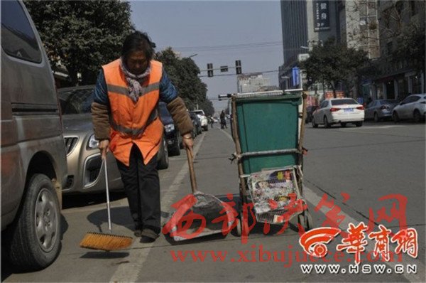 余師傅是周至縣一名保潔員,59歲的他去年12月6日正式上崗,主要負責周至縣溫泉路一段保潔區(qū)。