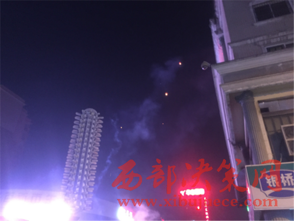 21時,我社工作人員趕到了李女士所居住的長安區(qū)步行街北口,見道路兩邊停滿了車輛,交通嚴(yán)重堵塞。廣場上鞭炮聲震耳欲聾,煙花四濺,空中濃煙滾滾,硝煙刺鼻。平均不到5分鐘就有一盞孔明燈迎空而上,現(xiàn)場圍滿了看熱鬧的市民。在現(xiàn)場,一家賣煙花爆竹的攤位生意格外紅火,攤主在沒有任何防護(hù)措施的情況下就做起了買賣。