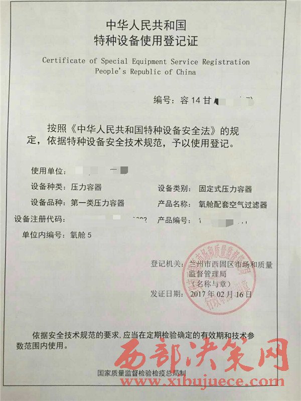 此次特種設(shè)備使用證書的順利發(fā)放,標志著蘭州市西固區(qū)政務(wù)服務(wù)中心市場和質(zhì)量監(jiān)督管理局中心窗口對轄區(qū)單位已進入“嚴謹、認真、務(wù)實、高效”的新時期服務(wù)軌道。