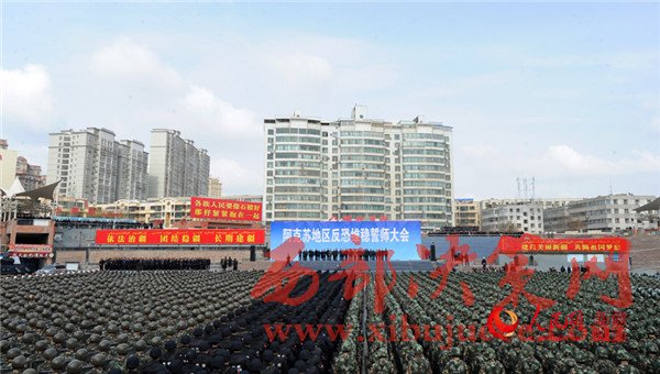 自治區(qū)反恐維穩(wěn)誓師大會現場。