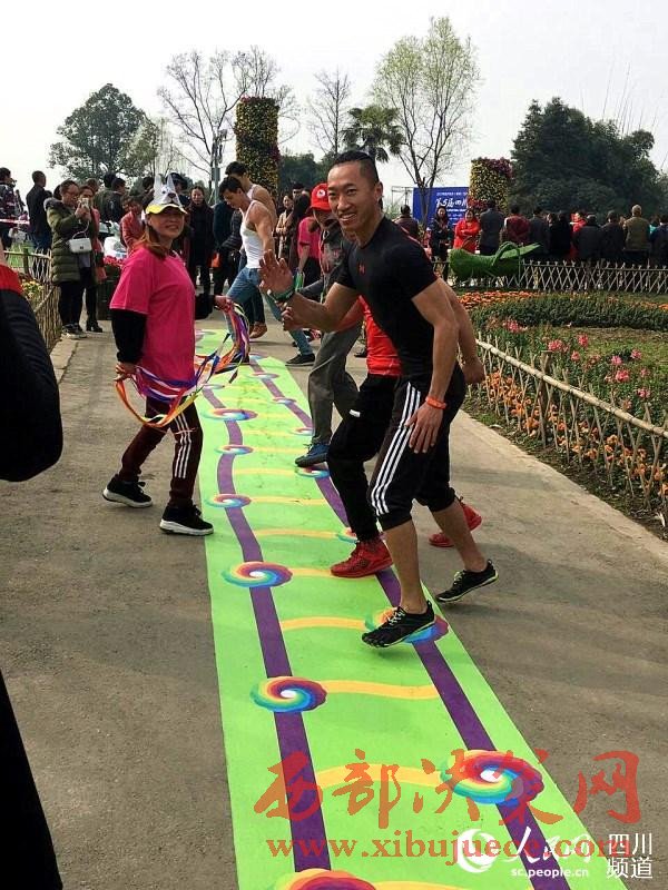 2017年四川花卉(果類)生態(tài)旅游節(jié)分會場暨第五屆四川自駕賞花節(jié)今日在成都崇州市榿木河濕地公園開幕。開幕式現(xiàn)場,近千人參加了“五彩飛揚健步走”活動,盡享濕地春日明媚花海。