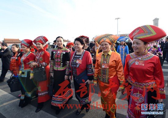 3月7日,全國人大代表申紀(jì)蘭(左)和郭鳳蓮準(zhǔn)備參加十二屆全國人大五次會議山西代表團(tuán)的會議。在兩會會場內(nèi)外,女代表、女委員、女工作人員、女記者在工作中盡職盡責(zé),展現(xiàn)著自己的風(fēng)采。