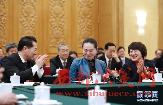 3月7日,遼寧代表團(tuán)的馮玉萍代表(前中)在發(fā)言時(shí)激動不已。在兩會會場內(nèi)外,女代表、女委員、女工作人員、女記者在工作中盡職盡責(zé),展現(xiàn)著自己的風(fēng)采。