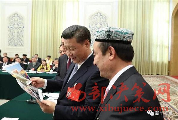 3月10日,中共中央總書記、國家主席、中央軍委主席習近平參加十二屆全國人大五次會議新疆代表團的審議。