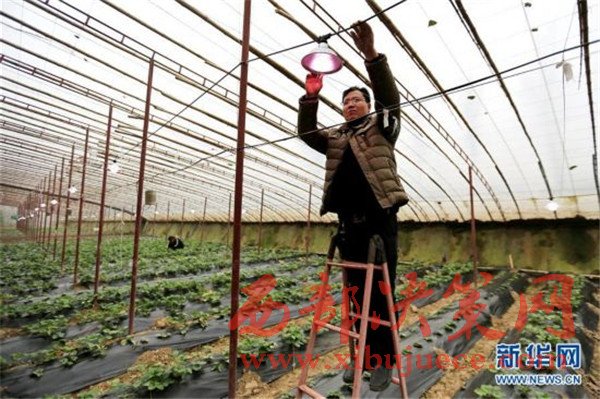 河北:農(nóng)民針對(duì)陰天及霧霾天氣在大棚內(nèi)裝植物生長(zhǎng)燈