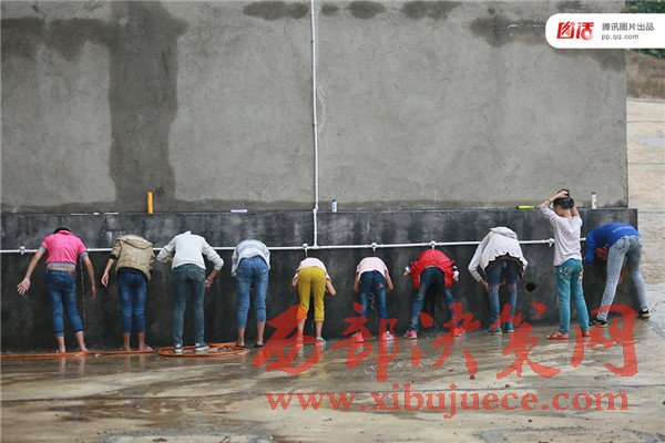 圖為2016年5月25日,湖南省隆回縣三閣司鎮(zhèn)中學,是五年級至九年級的鄉(xiāng)村寄宿制學校,1600多名學生中近70%是留守兒童。室外,一群女生直接用自來水洗頭。