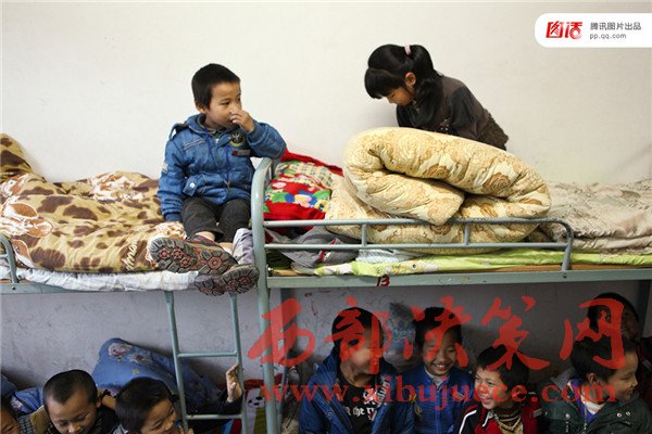 教育公益組織歌路營的數(shù)據(jù)顯示我國基礎(chǔ)教育階段寄宿制學生數(shù)量達3276萬,其中60%是留守兒童。2015年,歌路營發(fā)布了《中國農(nóng)村住校生調(diào)查報告》,在走訪了幾百所農(nóng)村寄宿校后,報告用“擠、險、臭”來形容農(nóng)村孩子糟糕的住宿環(huán)境。圖為2012年11月,浙江松陽縣大東壩鎮(zhèn)中心學校,住校的人太多床鋪緊張達不到一人一床的標配,常常安排兩個孩子睡在一起。