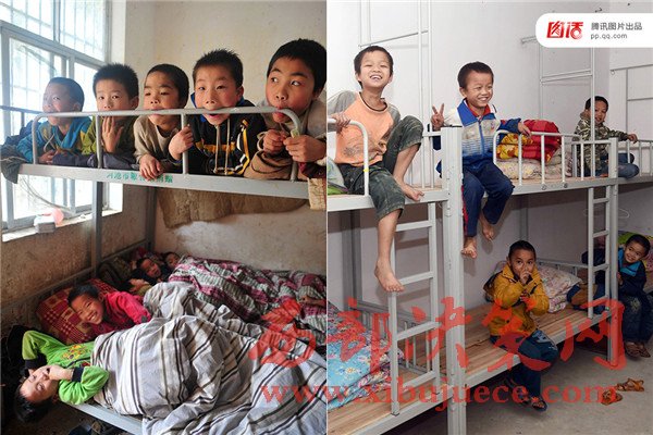 近些年,政府和民間組織相繼推進兩免一補、免費午餐工程等,加大投入改善農(nóng)村基礎(chǔ)教育環(huán)境。左圖:2014年3月28日,廣西廣西都安瑤族自治縣梅珠小學學生宿舍,一個床上擠著3、4名學生;右圖:廣西啟動為期4年的全面改善貧困義務教育薄弱學?;巨k學條件計劃,率先攻堅“大通鋪”難題,梅珠小學的孩子們告別三四人的“大通鋪”,實現(xiàn)一人一床。
