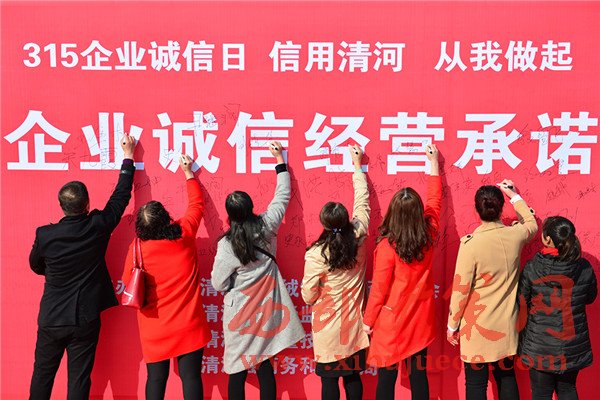 3月14日,河北省清河縣網(wǎng)店經(jīng)營(yíng)者在“3·15誠(chéng)信墻”上簽名。