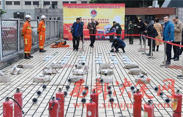這是3月14日拍攝的2017年福州市假冒偽劣消防產(chǎn)品集中銷毀儀式現(xiàn)場(chǎng)。