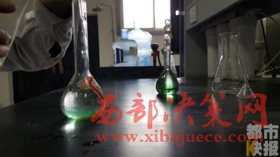 從充分溶解的樣品中看,在格子鋪購買的耳環(huán)樣品,溶解后顏色發(fā)綠,而連鎖店里的樣品,相對透明。工程師隨先后將兩份樣品溶液放進(jìn)了專業(yè)檢測儀器,正在檢測中,數(shù)據(jù)突然出現(xiàn)了異樣。