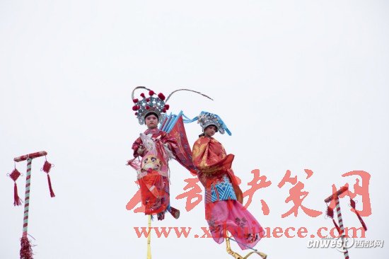 兩個(gè)小孩正在進(jìn)行社火表演。