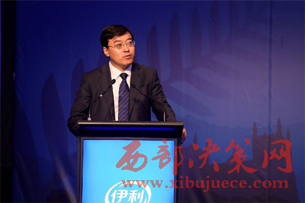 伊利集團(tuán)董事長(zhǎng)兼總裁潘剛在“伊利大洋洲生產(chǎn)基地(二期)揭牌暨金領(lǐng)冠睿護(hù)奶粉面世儀式”上發(fā)表主旨演講。