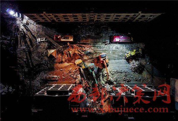 這是航拍的包頭市北只圖村向陽小區(qū)爆炸事故救援現(xiàn)場(3月25日攝)