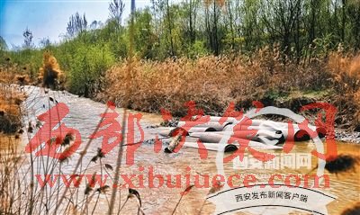 記者隨后從同一位置的浐河右岸(東岸)觀察,發(fā)現(xiàn)流入浐河的污水被河灘和雜草叢分成了十多股細(xì)流,從南向北陸續(xù)有四五十米長。