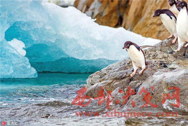 南冰洋企鵝排隊跳水前畫面溫馨有趣