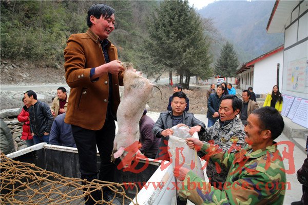 3月7日,花石村的貧困戶正在領(lǐng)取免費(fèi)豬仔