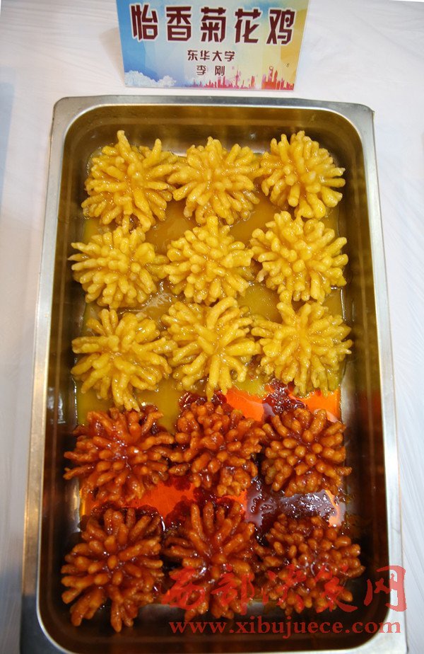 “中國第九大菜系”食堂菜的菜譜里,一天之內(nèi)多出了上百個新成員。11月12日,一場上海高校食堂間的“創(chuàng)新菜”比賽在上海大學(xué)寶山校區(qū)舉行。東華大學(xué)食堂借鑒“菊花魚”,推出了一道“怡香菊花雞”,也引起了現(xiàn)場的熱議,最終斬獲禽菜類前十名。