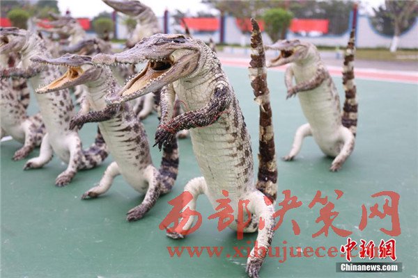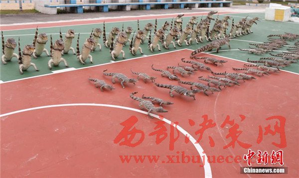 其中鱷魚標(biāo)本32件為站姿,45件為爬行姿態(tài),最大的標(biāo)本長度近2米。