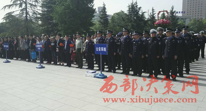 西部決策網(wǎng)-西部大開發(fā)訊(帥華鋒 杜杰)5月6日上午,渭濱區(qū)在炎帝園廣場(chǎng)隆重舉行打造“經(jīng)二路平安示范一條街” 夏季攻堅(jiān)行動(dòng)推進(jìn)會(huì),市委政法委及區(qū)委、區(qū)人大、區(qū)政府、區(qū)政協(xié)相關(guān)領(lǐng)導(dǎo)出席現(xiàn)場(chǎng),公安、執(zhí)法、區(qū)級(jí)部門、平安單位、社區(qū)志愿者組成五個(gè)方陣共300余人參加會(huì)議。