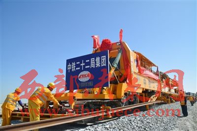 格庫(kù)鐵路鋪軌作業(yè)現(xiàn)場(chǎng)。