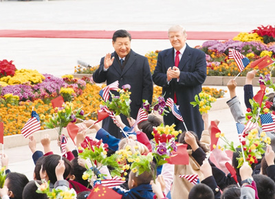 11月9日,國(guó)家主席習(xí)近平在北京人民大會(huì)堂東門(mén)外廣場(chǎng)舉行歡迎儀式,歡迎美利堅(jiān)合眾國(guó)總統(tǒng)唐納德·特朗普對(duì)中國(guó)進(jìn)行國(guó)事訪問(wèn)。(記者 李學(xué)仁 攝)