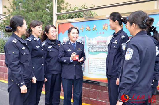 山東省女子強(qiáng)制隔離戒毒所醫(yī)療康復(fù)科科長(zhǎng)李芙蓉向同事宣講十九大精神。劉桂珍 攝