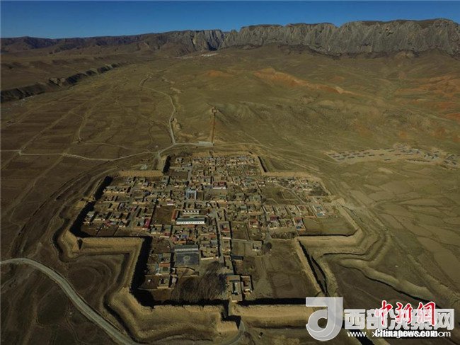 11月24日,航拍鏡頭下的甘肅藏區(qū)高原“八角古城”蔚為壯觀。