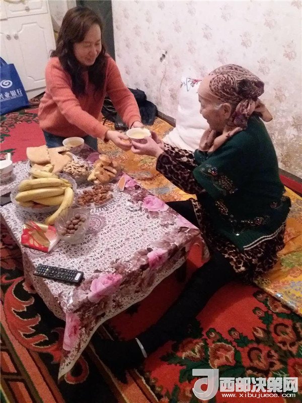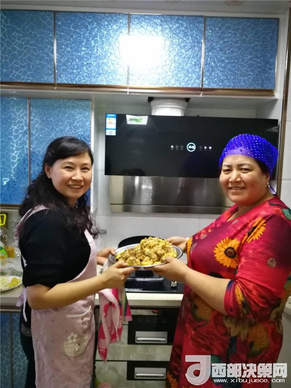 艾來提·賽買提的父親賽買提·阿合買提一面接過韓莉書記手里的米、面、清油和兩大兜食材,一面心疼地埋怨:“這么冷的天,你們又拿這么多東西,多辛苦,你上次送來的東西還沒有吃完呢。”韓莉和王艷萍笑而不語,心里默默地盤算著帶給親戚意外的驚喜。因?yàn)榘瑏硖?middot;賽買提和愛人長(zhǎng)期兩地分居,聚少離多。今天正好是他們父母結(jié)婚三十周年紀(jì)念日,她們?nèi)嗽缇蜕塘亢靡欢ㄒH手做一頓飯,邀請(qǐng)這個(gè)民族團(tuán)結(jié)大院里附近的同事和各自的親戚一起來給這個(gè)小家庭舉辦一場(chǎng)別開生面的大融合聚會(huì),她們忙碌著,擇、洗、炒,撲鼻的香味彌漫在親戚的家中……