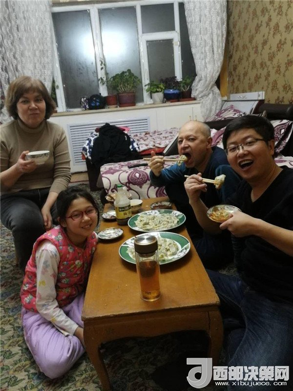 傍晚,一大群來自不同民族,不同單位的新疆兒女聚在了一起,紛紛加入到這個(gè)民族團(tuán)結(jié)的大聚會(huì)里,彈一首歡快悅耳的冬不拉,舞一曲深情優(yōu)美的賽乃姆,唱一首民族團(tuán)結(jié)的贊歌,將整個(gè)聚會(huì)推向高潮。賽買提·阿合買提高興地說:“我今天太開心了!這個(gè)結(jié)婚紀(jì)念日太有意義了,你的親戚,我的親戚,變成了我們的親戚,以后這就是你們的家,你們要經(jīng)常來??!” 趁著大家都在興頭上,韓莉書記又拿出學(xué)校專門印制的《不忘初心 牢記使命-黨的十九大精神進(jìn)校園讀本》,熱情地為親戚們宣傳起十九大精神,給大家講起黨的好政策來。在得知艾來提·賽買提目前還沒有找到合適的工作,沒有穩(wěn)定收入的情況后,大家立刻表示愿意幫助他早日找到合適的工作,幫助他們解決最實(shí)際的困難,把溫暖送到他們的心坎中。大家唱唱跳跳,說說笑笑,其樂融融,在互幫互助中讓民族團(tuán)結(jié)之花越開越艷。