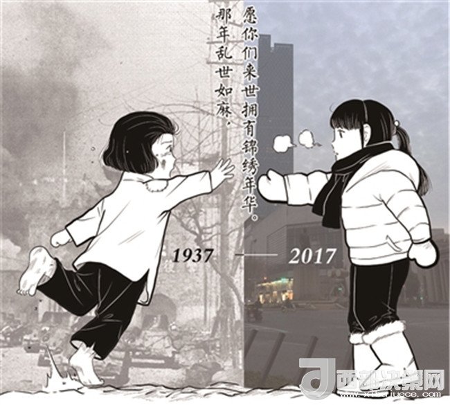 “那年亂世如麻,愿你們來(lái)世擁有錦繡年華”。昨日,這句話被許多網(wǎng)友轉(zhuǎn)發(fā)提及,這句話來(lái)自于一張漫畫圖,圖中兩名分別來(lái)自1937年和2017年的女孩隔空相對(duì),一人身邊戰(zhàn)火紛飛,一人身處和平現(xiàn)代。這幅圖的作者朱彥告訴記者,該圖創(chuàng)作于去年12月,今年有網(wǎng)友把原圖中的2016年換成了2017年,之所以想要畫這張圖,是因?yàn)橄胱尨蠹也灰涍@段歷史,而網(wǎng)友的大量關(guān)注在他們意料之外,“說(shuō)明我們想表達(dá)的情緒網(wǎng)友感受到了。”