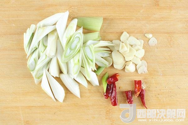 其它調(diào)料:大蔥3兩蒜3瓣干辣椒兩個(gè)少許醬油和黃酒腌肉用
