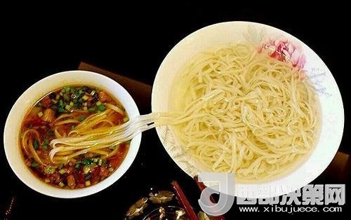 戶縣擺湯面是在具有悠久歷史的關(guān)中臊子面的基礎(chǔ)上,創(chuàng)新而成的一種面食后起之秀。戶縣當(dāng)?shù)赜校?ldquo;下到鍋里蓮花轉(zhuǎn),撈到碗里疊絲線,吃到口里嚼不斷,咽到肚里香半年”的歌謠,專(zhuān)門(mén)夸贊擺湯面的美味。