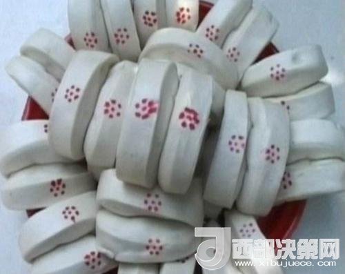 小吃本名“早告饃”,后來(lái)由于在饃上染花、放棗,所以又叫“棗糕饃”。棗糕饃用黃酒渣子做酵引,按季節(jié)用不同溫度的水和成面團(tuán),成型后再餳發(fā)半小時(shí)左右,用鐵鍋旺火蒸制而成。棗糕饃宜大量制作,用繩結(jié)串,吃時(shí)再蒸。棗糕饃不兌堿,色白質(zhì)軟,略帶甜味,是待客、饋贈(zèng)佳品。