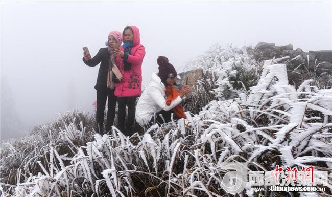 12月17日,福建省長(zhǎng)汀縣天井山迎來(lái)首場(chǎng)霧凇,吸引不少游客前來(lái)觀賞。根據(jù)天氣預(yù)報(bào)顯示,未來(lái)的一周,長(zhǎng)汀縣最低氣溫低至零下2攝氏度,部分高海拔地區(qū)將出現(xiàn)凍雨現(xiàn)象。 (張平 攝)