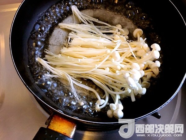 金針菇汆熟。