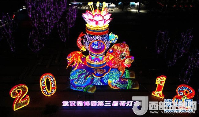 這是1月1日拍攝的武漢園博園第三屆花燈會上的一處花燈。當日,武漢園博園第三屆花燈會開幕。本屆花燈會共設置8大版塊118組彩燈,吸引了許多市民前來觀賞。 (記者 程敏 攝)