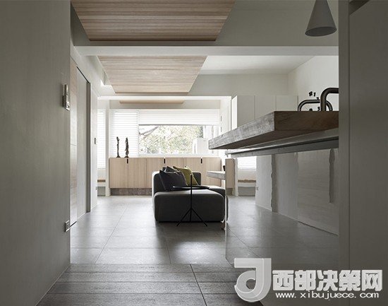 長(zhǎng)長(zhǎng)的走道并不采取滿(mǎn)鋪的設(shè)計(jì),考慮采光的同時(shí)注重收納空間的規(guī)劃,有時(shí)不以鞋柜做隔擋空間會(huì)有更多的可能。