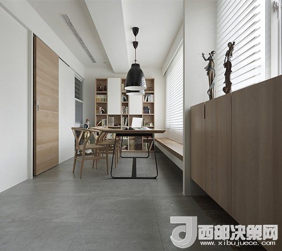 考慮到不占用空間,移門(mén)是一個(gè)很好的選擇,和整體色調(diào)一致的木門(mén)增添了一絲和風(fēng)的感覺(jué)。