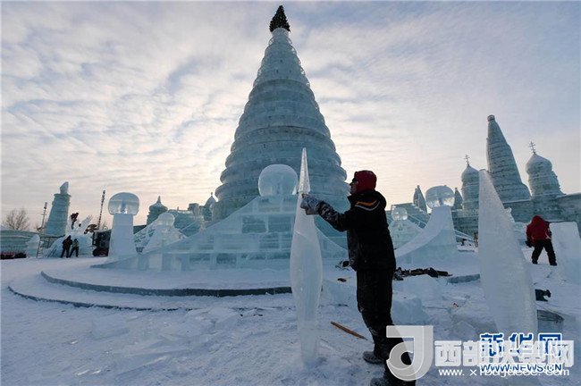 1月3日,在哈爾濱冰雪大世界園區(qū),冰雕選手在進行創(chuàng)作。當(dāng)日,在哈爾濱冰雪大世界園區(qū)內(nèi)舉行的國際組合冰冰雕比賽進入第四天。經(jīng)過來自世界各地的冰雕選手悉心雕琢,一塊塊冰出落成精美的藝術(shù)作品,仿佛晶瑩剔透的出“冰”芙蓉。(記者 王建威 攝)