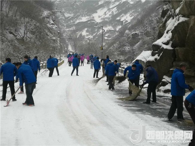 1月5日上午,集團(tuán)從各單位抽調(diào)400余名員工赴黃甫峪和甕峪兩條進(jìn)山公路再次清理冰雪。黃甫峪公路和甕峪進(jìn)山公路是華山景區(qū)東、西兩條索道的必經(jīng)之路,因特殊的地形特點(diǎn),山體陰面積雪較厚,路面結(jié)冰現(xiàn)象嚴(yán)重,清理難度較大。對此,集團(tuán)統(tǒng)一指揮,緊密協(xié)作,首先對路面積雪進(jìn)行了清掃,再用鐵鍬等工具對結(jié)冰進(jìn)行深度清除,最后再對路面進(jìn)行了細(xì)化處理,力爭進(jìn)山公路盡快暢通。