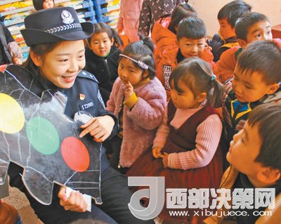 圖為1月15日,派出所民警在下浦幼兒園教小朋友認(rèn)識(shí)“紅綠燈”。