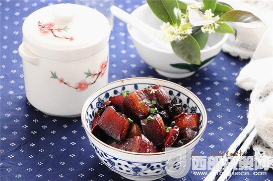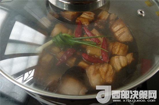 12.可樂(lè)紅燒肉盛起,撒點(diǎn)兒蔥花,即可食用
