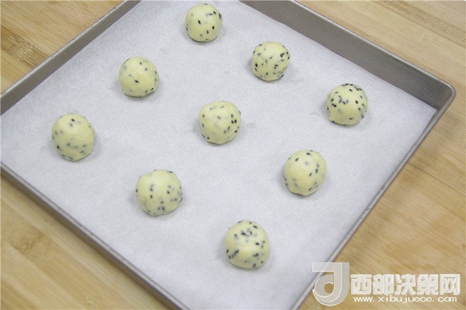 5.面團靜置完后,分成20克一小份,用掌心壓扁。