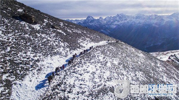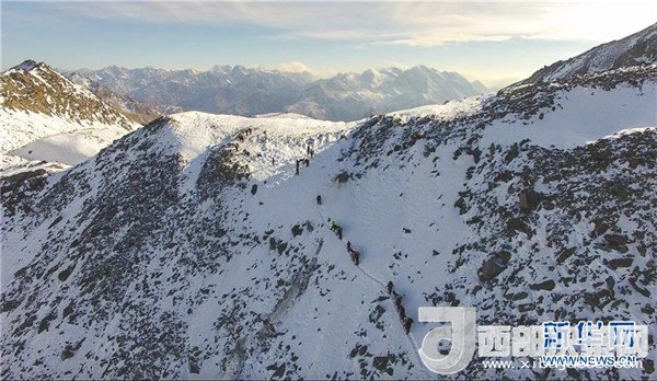 巡診隊(duì)沿著幾乎垂直的牧道翻越海拔4000多米的喬拉克達(dá)坂(2017年12月15日攝)。