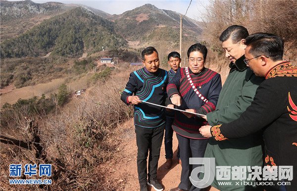 這是習近平在涼山彝族自治州昭覺縣三岔河鄉(xiāng)三河村聽取易地扶貧搬遷安置點規(guī)劃情況介紹。社記者 鞠鵬 攝