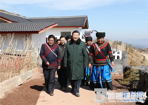 這是習近平在涼山彝族自治州昭覺縣解放鄉(xiāng)火普村貧困戶吉地爾子家的新居了解生產(chǎn)生活情況。記者 鞠鵬 攝