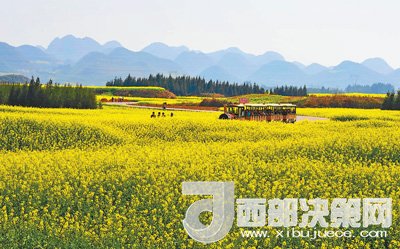 春節(jié)期間,正值云南省羅平縣100萬(wàn)畝油菜花迎春盛開(kāi),吸引了國(guó)內(nèi)外大量游客紛至沓來(lái),從初一至初五羅平縣共接待游客84.51萬(wàn)人次,旅游綜合收入5.87億元。楊文明 毛 虹攝影報(bào)道