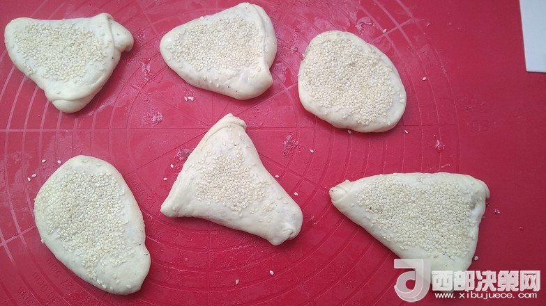 9.表層刷少許水撒上芝麻用手心壓實(shí)